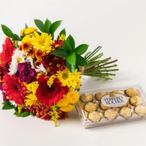 Buquê Grande de Flores do Campo Coloridas e Chocolate