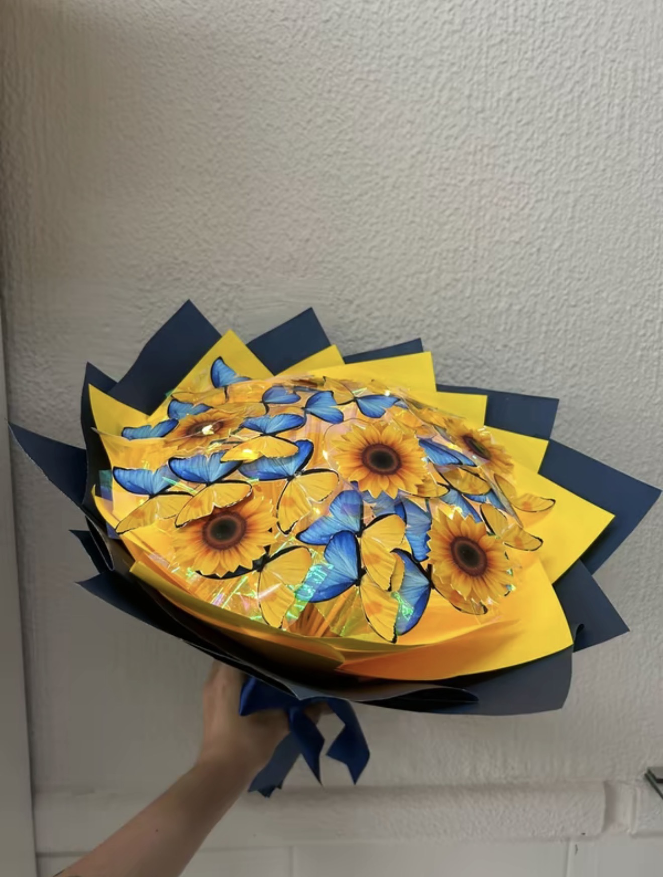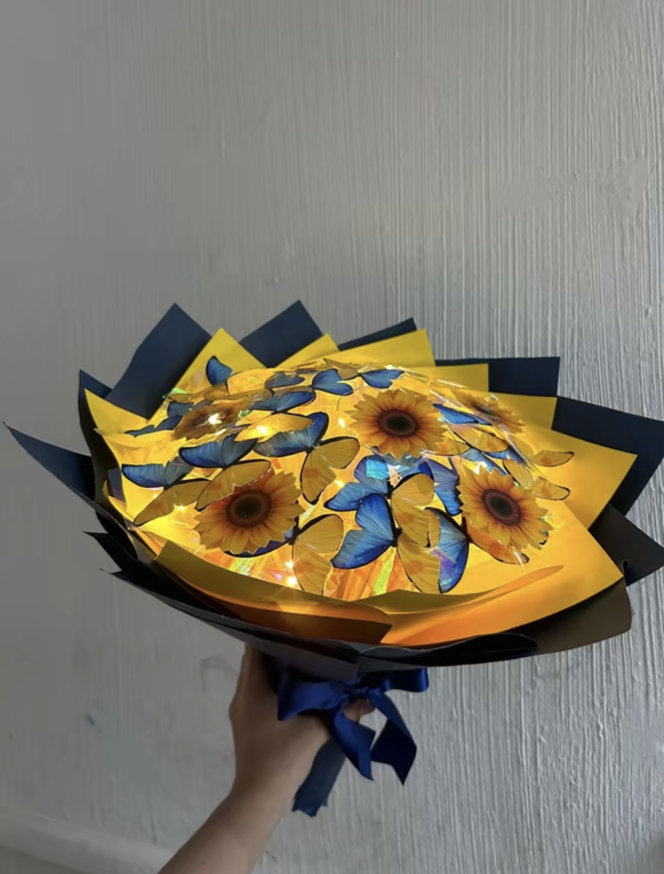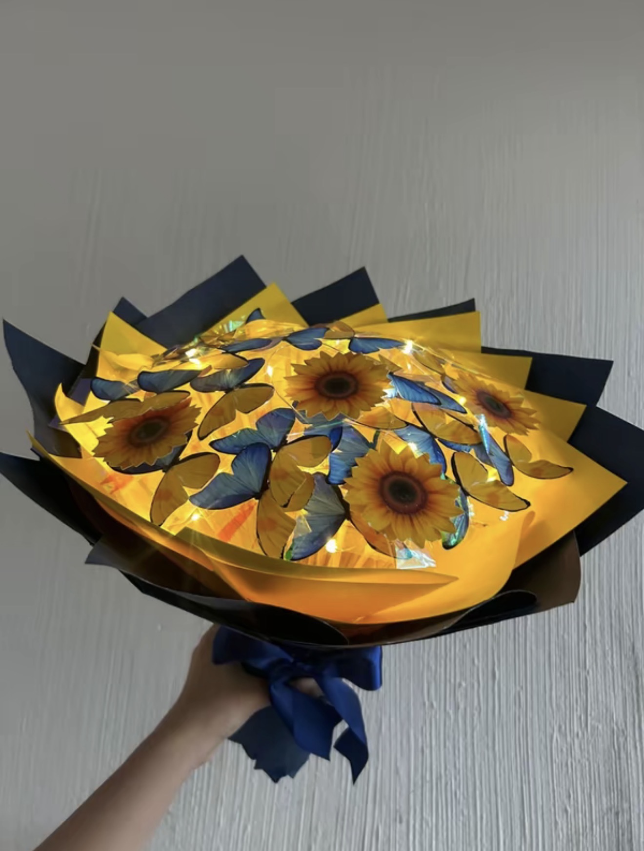 Buque de borboleta Van Gogh com LED e girassol